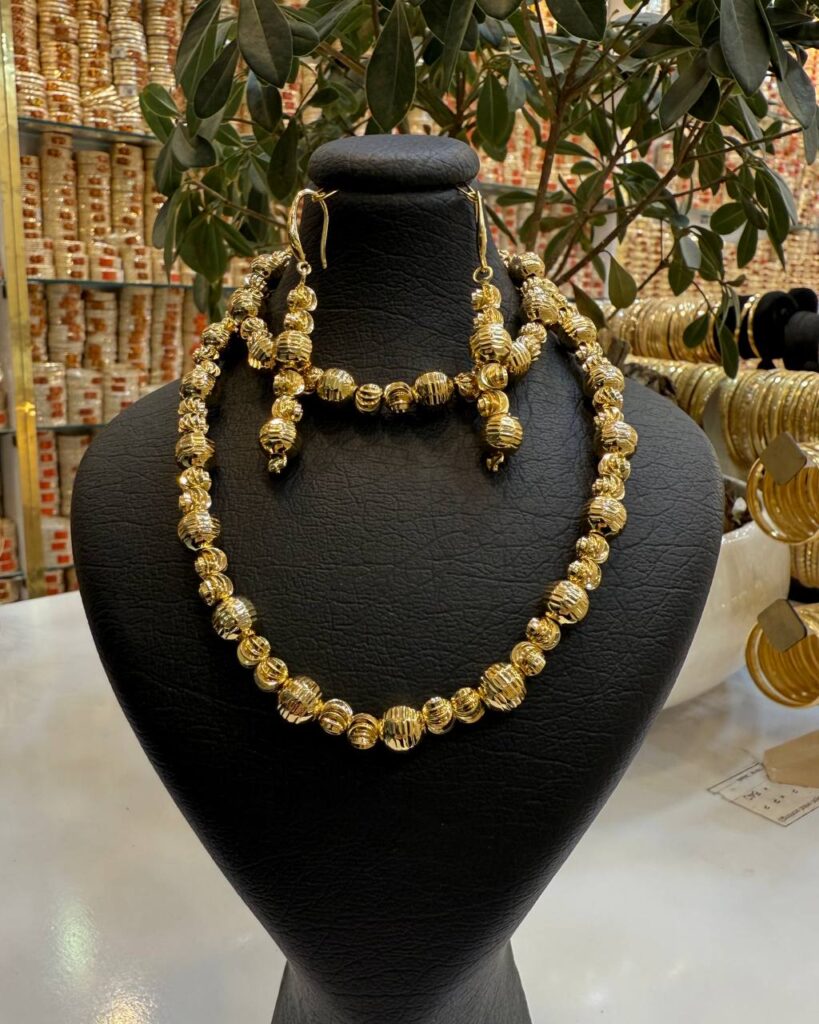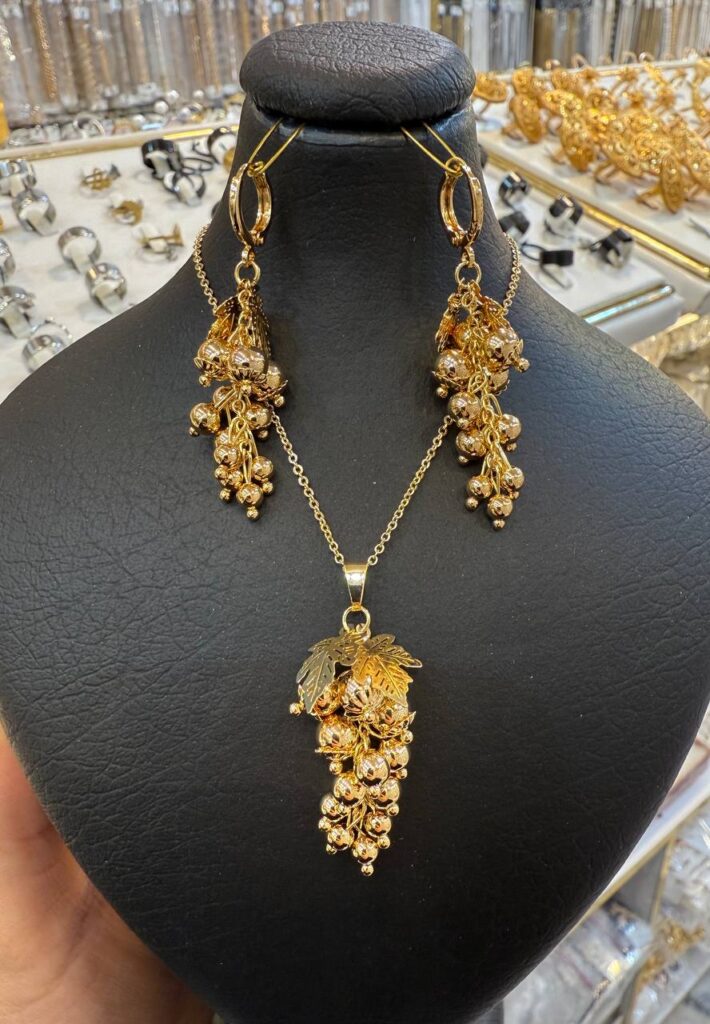 نیم ست زنانه مدل انگوری رنگ طلایی