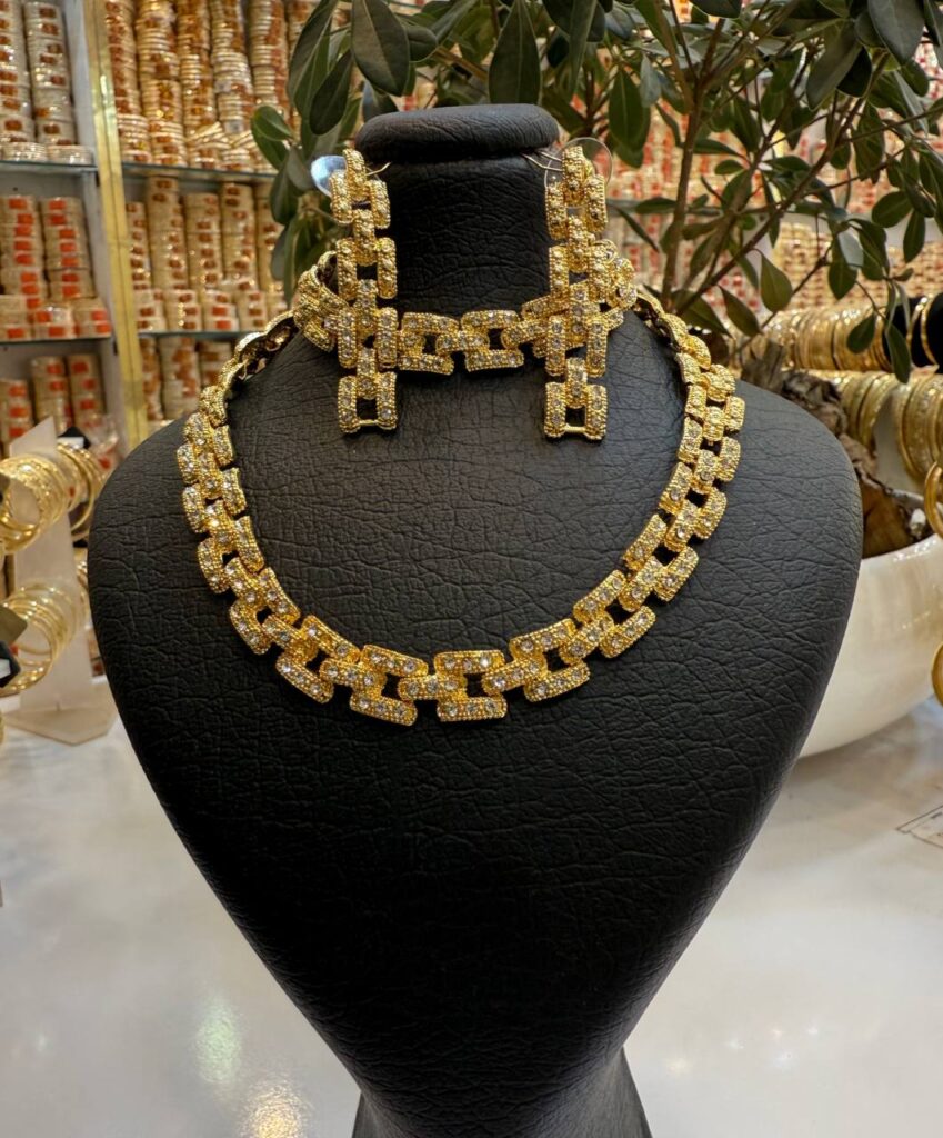 نیم ست زنانه مدل رولکسی نگین دار رنگ طلایی