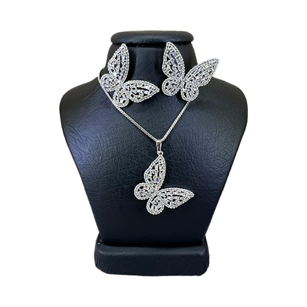 نیم ست پروانه ای رنگ نقره ای