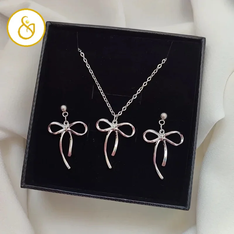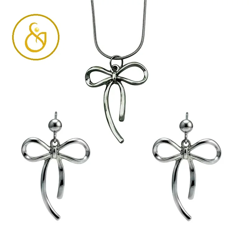 نیم ست گوشواره و گردنبند پاپیونی