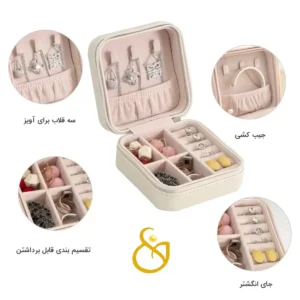 کیف جواهرات با روکش طرح چرمی سفید انتخابی عالی برای خانم‌هایی است که به نظم، استایل و محافظت از زیورآلاتشان
