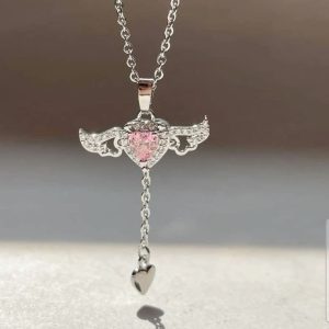 گردنبند بال متحرک سوارسکی نقره ای استیل