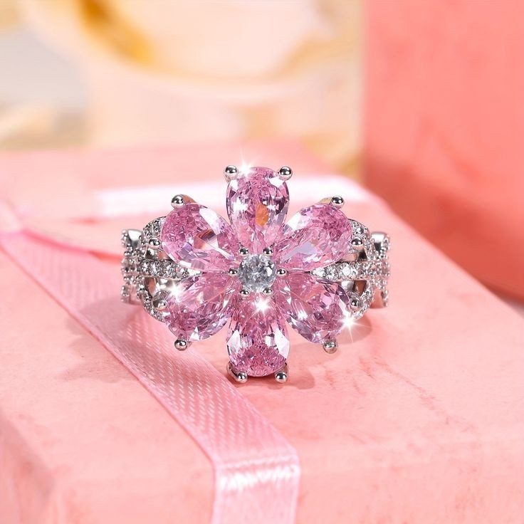 انگشتر ادا جواهری گل صورتی فری سایز