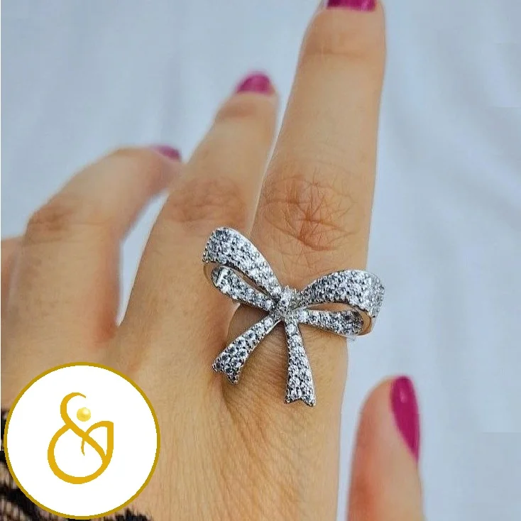 انگشتر پاپیون بزرگ فولنگین، یک اکسسوری بسیار جذاب، لاکچری و چشمگیر برای خانمهای خوشاستایل است. طراحی این انگشتر با پاپیون نگینکاریشده کامل، جلوهای فوقالعاده براق و متفاوت ایجاد میکند و آن را به انتخابی بینظیر برای استایلهای مجلسی، جشنها و حتی استفاده روزمره تبدیل کرده است.