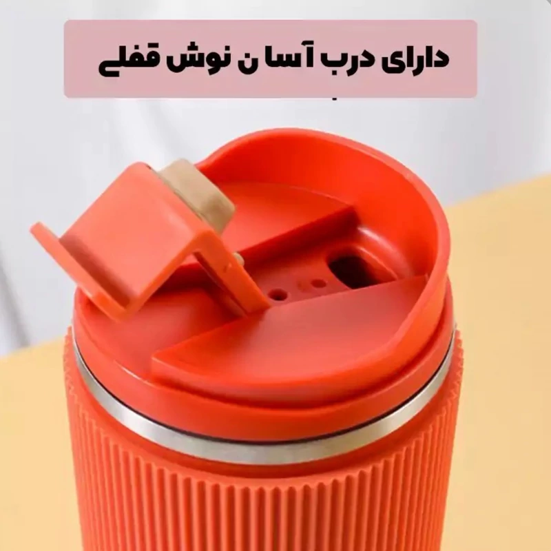 تراول ماگ مدل دور سیلیکونی گنجایش 450 میلی لیتر با جنس عایق استیل و درب آسان باز شو