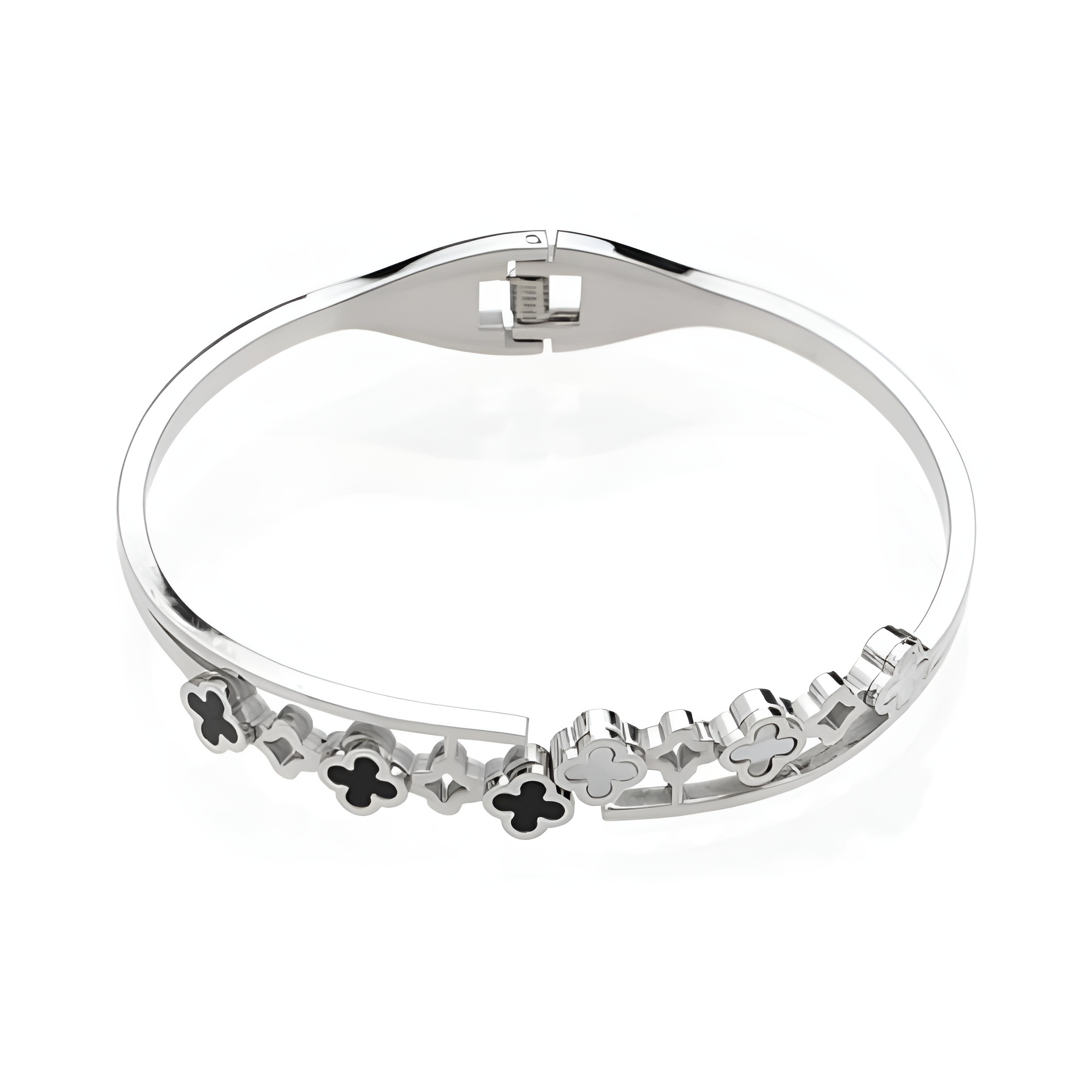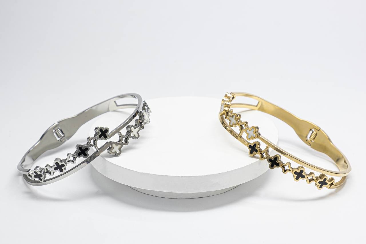دستبند النگویی زنانه مدل گل چهار پر شبدر