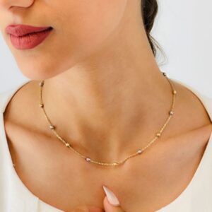 این گردنبند قابل استفاده برای دختران و بانوان، آقایان و پسران است. از جمله زیورآلات ترند است. دارای طرحی خاص که شما را متفاوت جلوه می دهد. مناسب برای ترکیب با گردنبند های بلند تر است. با کیفیت عالی و رنگ زیبا در اختیار شما عزیزان است. ثبات رنگ فوق العاده بالایی دارد. در صورت رعایت این موارد رنگ محصول ثابت است: از برخورد مستقیم الکل، اسپری، ادکلن بر روی محصول خودداری شود. از برخورد با شوینده های قوی از جمله وایتکس و غیره خودداری شود.