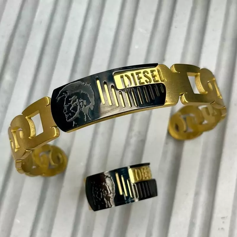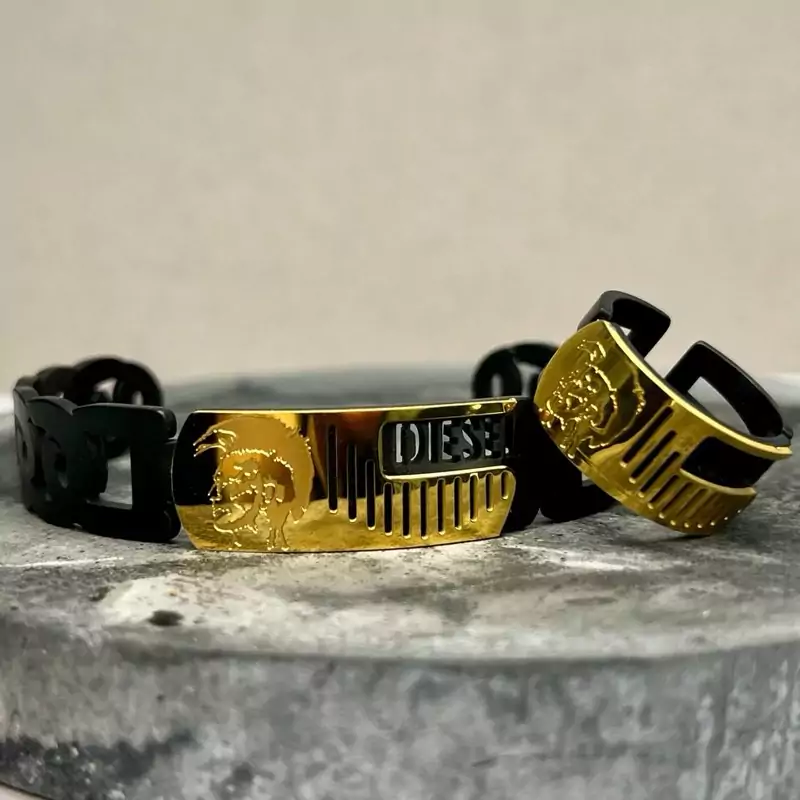 ست دستبند و انگشتر Diesel استیل خارجی رنگ مشکی طلایی