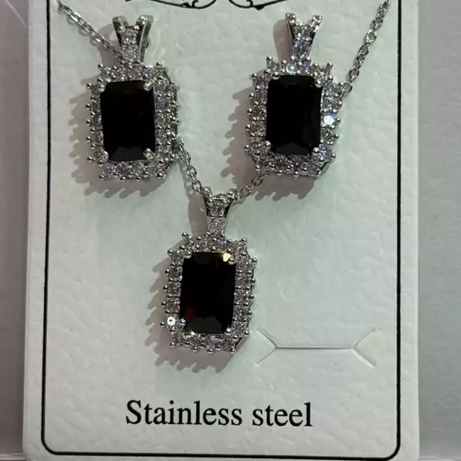 نیم ست جواهری فول نگین یاقوت مشکی