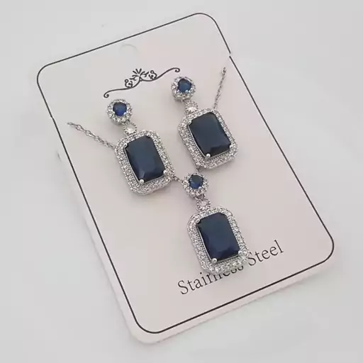 نیم ست جواهری نگین سورمه ای یاقوتی