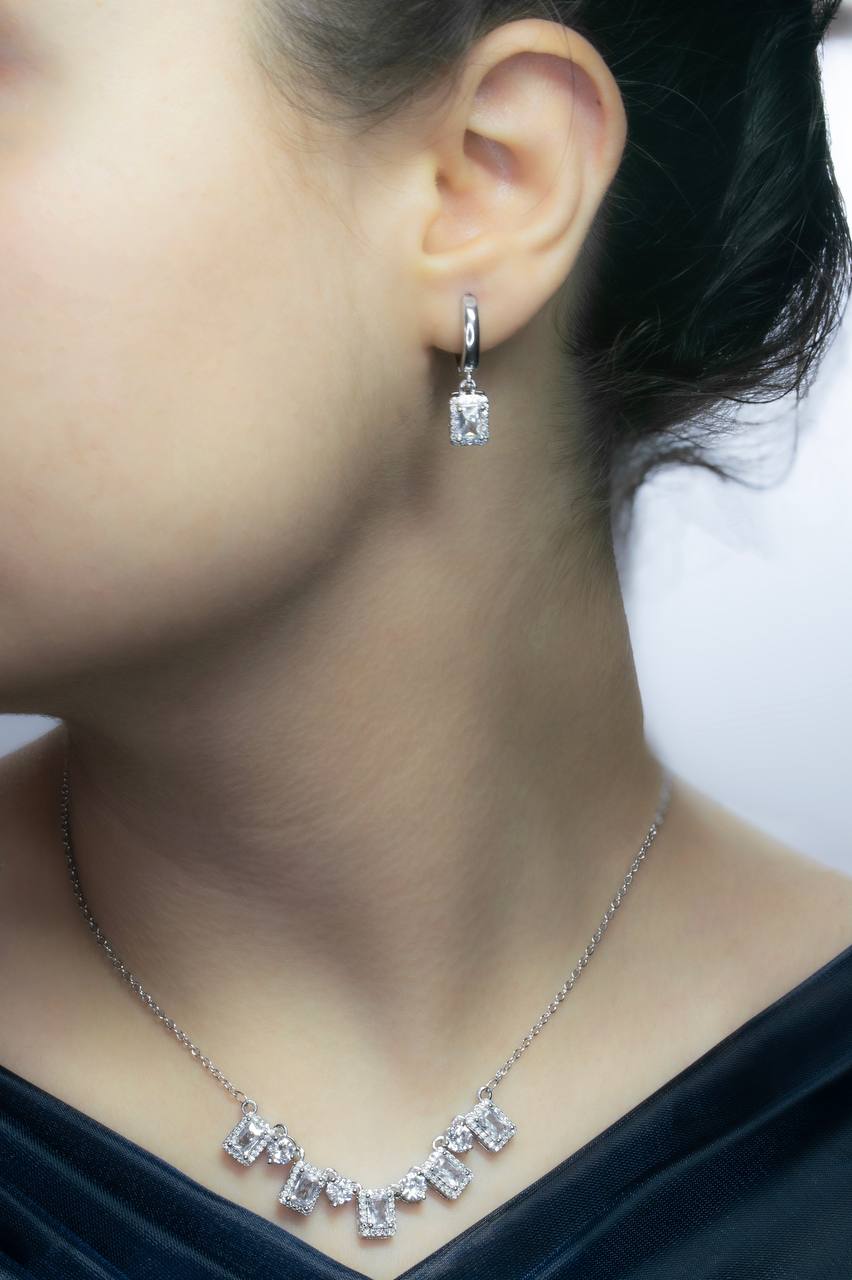 نیم ست گوشواره و گردنبند دخترانه مدل مربعی