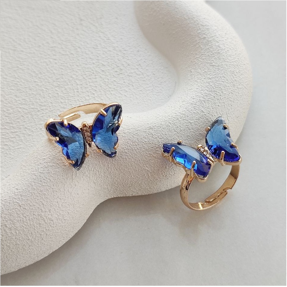انگشتر طرح پروانه رنگ آبی فری سایز