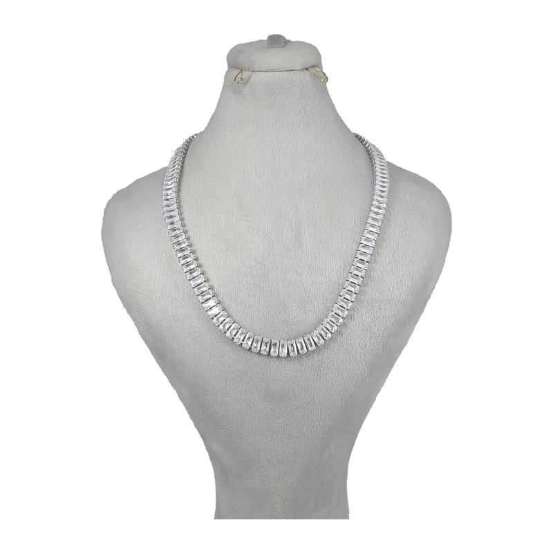 گردنبند زنانه مدل تنیسی یکی از محبوبترین انتخابها برای استایلهای رسمی و نیمهرسمی است. طراحی کلاسیک آن با ردیفی از نگینهای درخشان، جلوهای خیرهکننده به گردن میدهد و استایل شما را چشمگیرتر میکند. این گردنبند نهتنها برای مهمانیها و مجالس عالیست، بلکه بهقدری سبک و راحت است که میتوان آن را در طول روز نیز استفاده کرد.