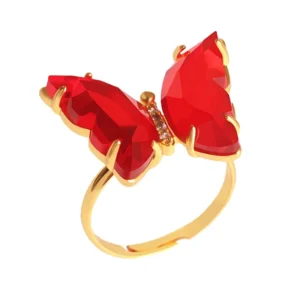 انگشتر طرح پروانه رنگ قرمز فری سایز