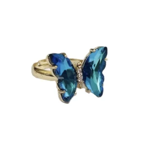 انگشتر طرح پروانه رنگ آبی فری سایز